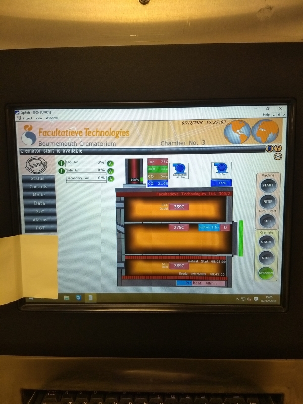 After looking around Bournemouth Crematorium, it was surprising how clinical the crematory was. Employee, Radow Slabat, showed me around and informed me that they have the most up-to-date systems in place. Advanced technology controls the levels of oxygen, CO2 and dust in the chambers, where the coffin is placed, while upstairs filtration tanks filter out any nasties including mercury.