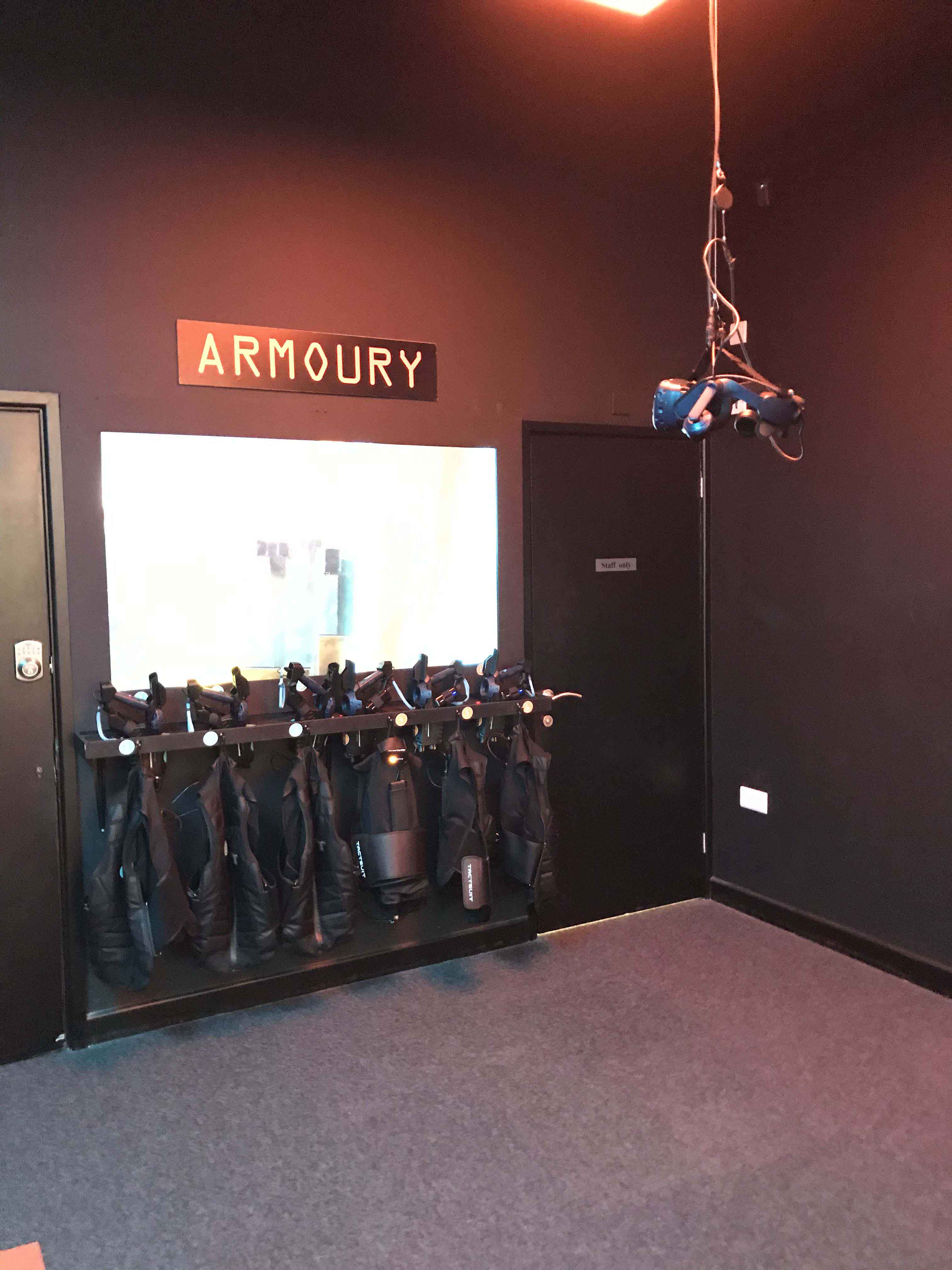 It looks like the waiting area for laser tag, but they’re actually controllers for a VR shooter – Taken by Hannah Rose Craven and Rhiannon Oliver