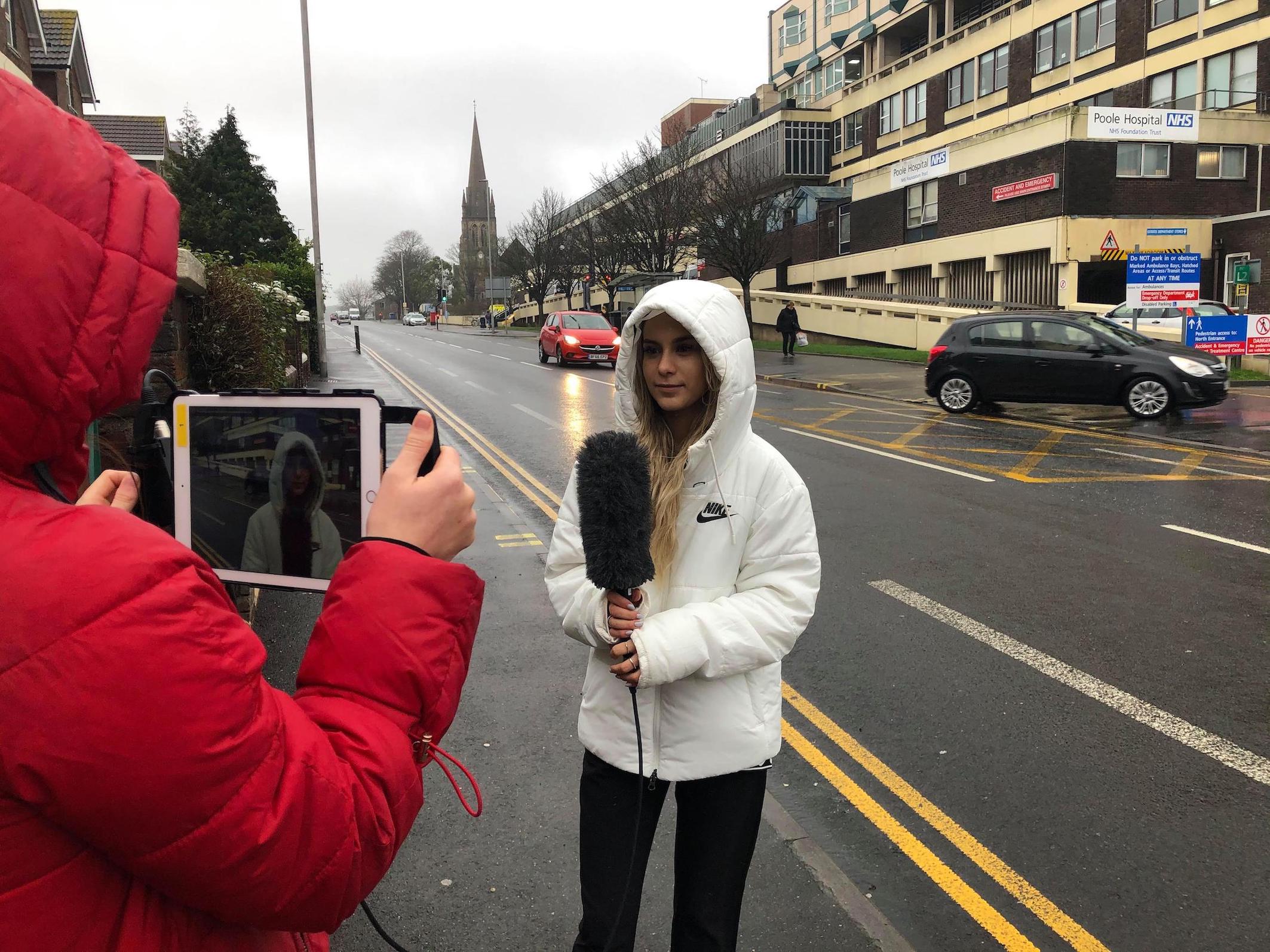 Picture of reporter Yasmin Syed outside Poole Hospital, taken by Maddie Ursell