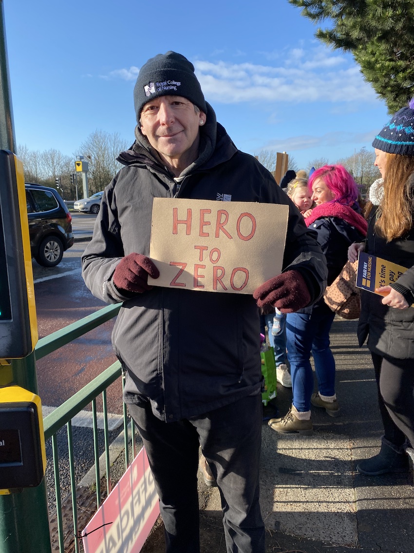 “This is all about the nurses. Raising awareness of the needs of the nurses. We shouldn’t be out here at all The government should be listening. We don’t want to be out here, we need to be inside delivering care.”