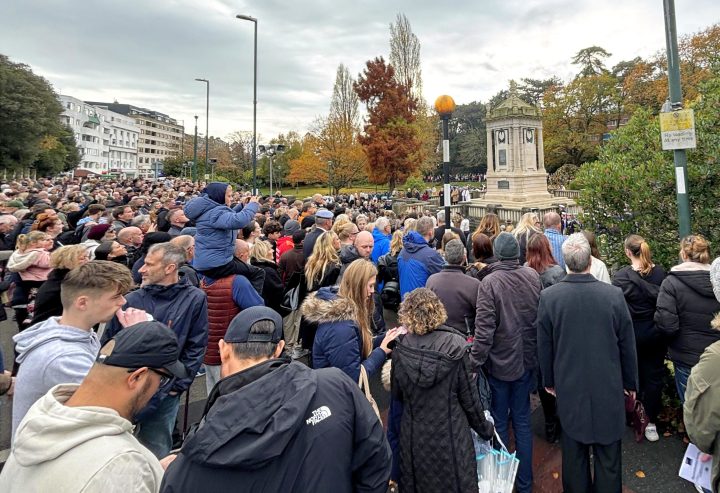 At the Bournemouth War Memorial Cenotaph in the Central Gardens, hundreds gathered on Remembrance Sunday to observe a memorial parade led by Salvation Army and BCCF marching bands alongside military representatives, local cadet troops and schools.
