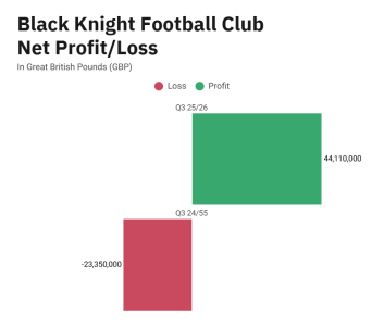 AFC Bournemouth’s ownership group Black Knight Football Club has seen £44 million in profit in the third quarter, ahead of the Cherrie’s proposed stadium redevelopment.