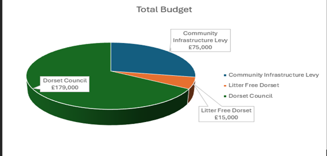 The total project cost is £269,000, split between the Community Infrastructure Levy, Litter Free Dorset, and Dorset Council.